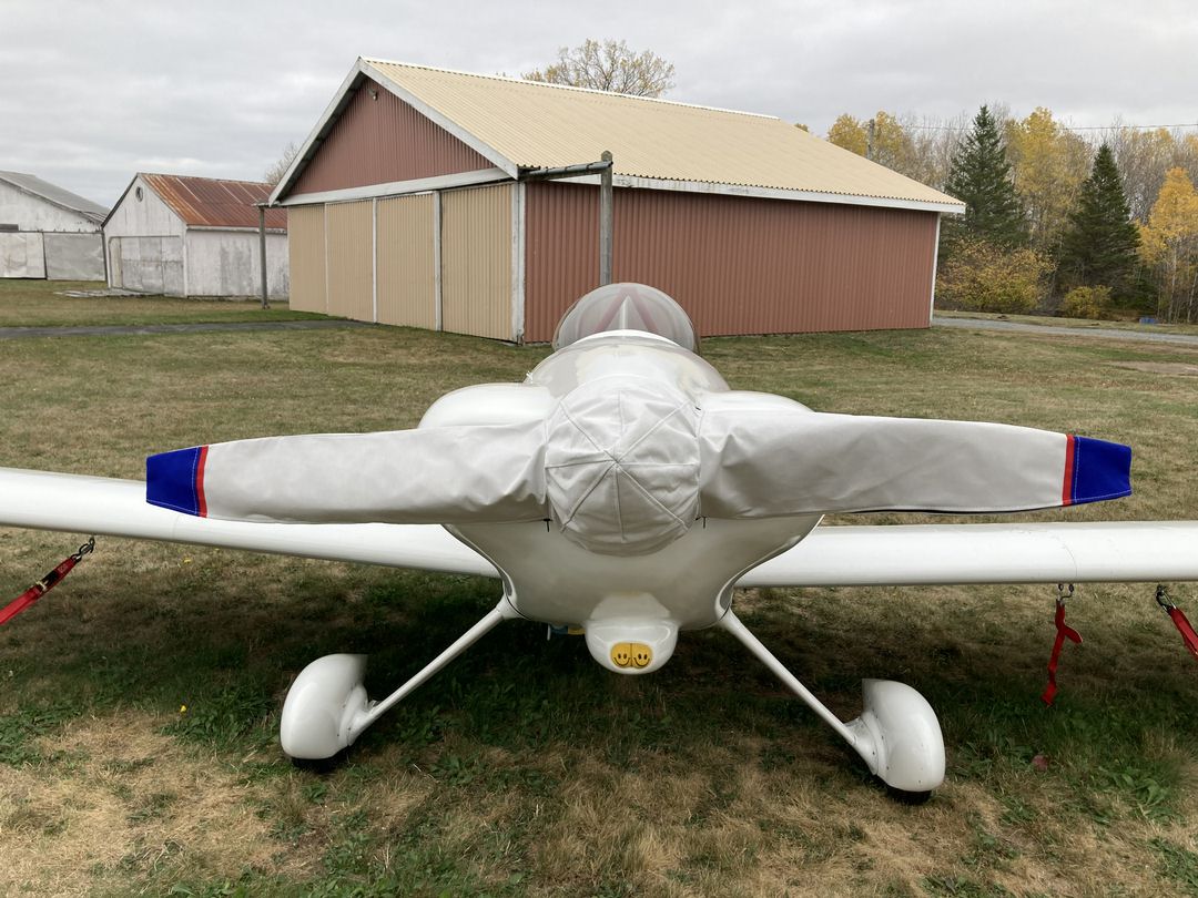 The Van's Aircraft RV-4 Propeller Cover is a one-piece design that form fits to the blades and spinner. The prop cover slips over the blades and spinner and is attached by a plastic all-weather zipper on the bottom of the blades. Propeller covers can be made for multiple numbers of blades, and for wooden, composite or metal props. The Propeller Cover is normally made from Acrylic Sunbrella or Solution-Dyed Polyester and is lined 100% with a soft and smooth microfiber. Insulated Propeller Covers works well in cold climates to help with engine preheating. These insulated versions are made with a thicker, quilted, water-repellent, and breathable material.... leer más